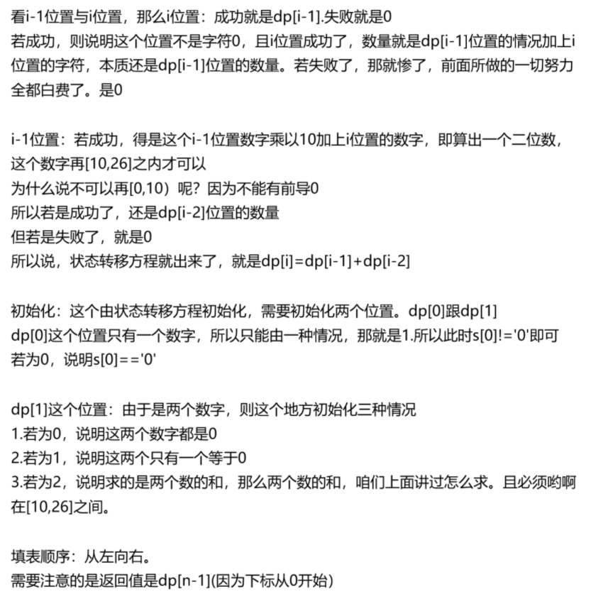 对于动态规划,之前也讲过应该是4道,咱们再来复习一下思路:状态表示(以哪个位置为结尾,怎么怎么样)-状态转移方程(根据最近几步的状态,推导出状态转移方程)-初始化(一般是根据状态转移方程来确定初始化的,因为要确保不会访问到空的数组嘛)-填表顺序(一般都是从左向右,但肯定有不一般的,咱们今天也会讲到)-返回值(根据dp表的下标来确定这个返回值是怎么回事)。
