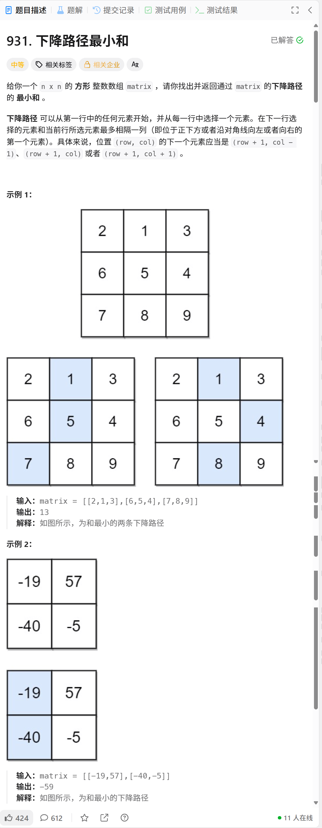 88.力扣-下降路径最小和
