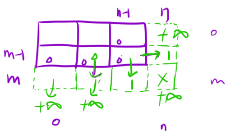 dp[m][n - 1] = dp[m - 1][n] = 1;