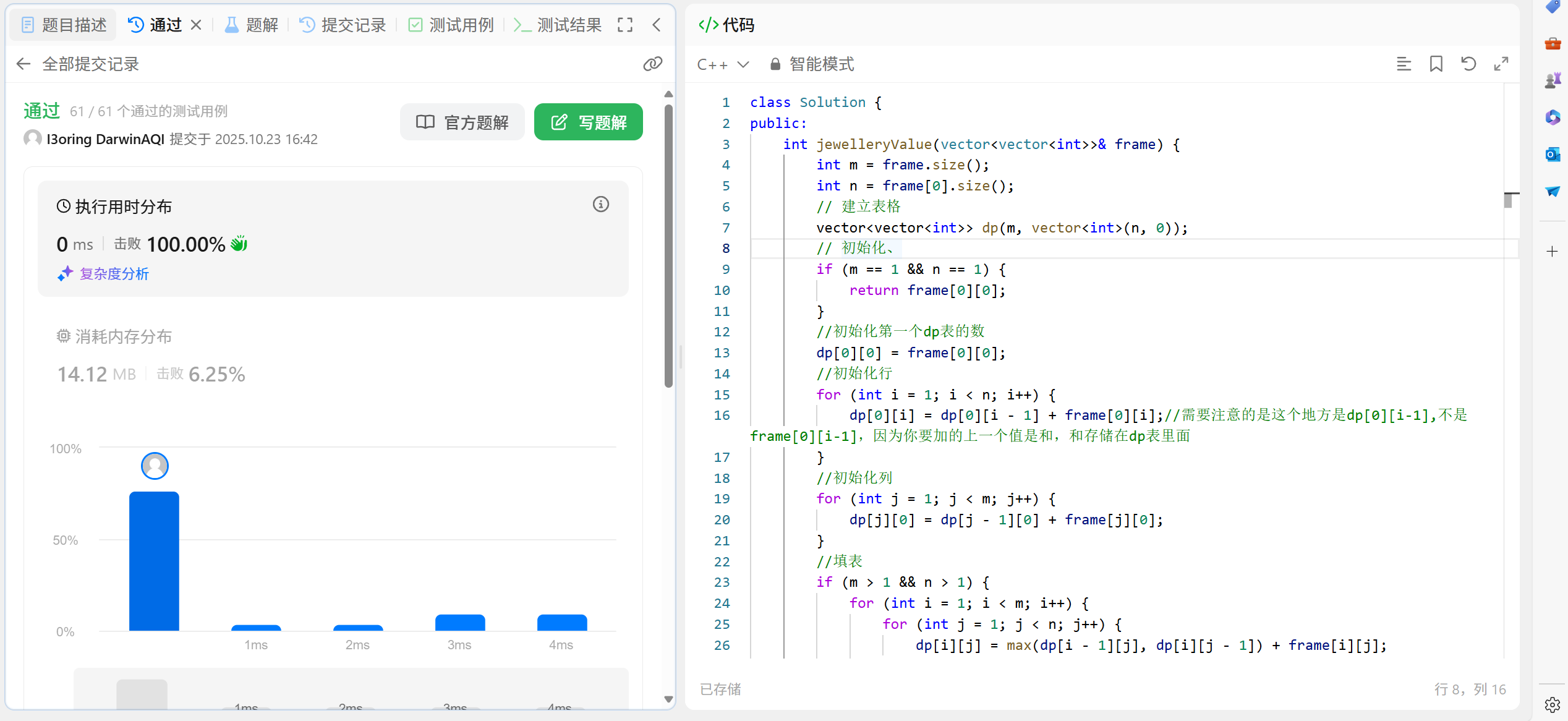 所以,咱们得反着来,就是【i,j】位置为起点,【0,0】位置为结尾。