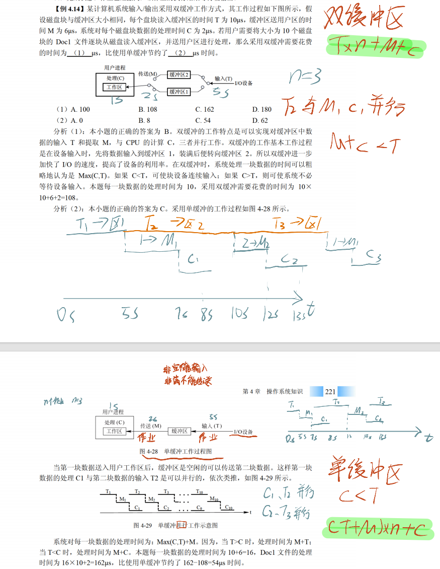 - 特点:CPU 利用率高(无需等待外设),响应及时;适用于实时性要求较高的场景(如键盘、鼠标)。例如,用户通过键盘输入字符时,CPU 发起 "读取键盘" 请求后继续执行其他任务;键盘输入完成后触发中断,CPU 处理输入的字符,处理完后回到原任务。