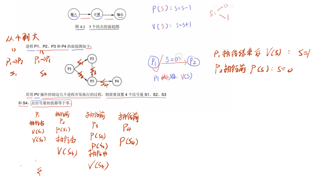 - 同步信号量:控制进程同步的信号量,初值为 "共享资源的数量" 或 "0"(如控制 "空缓冲区数量" 的同步信号量,初值为缓冲区总数)。