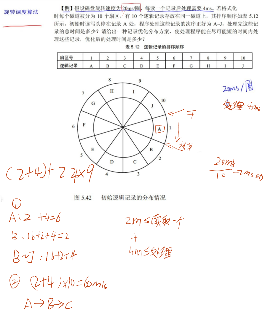 - 旋转延迟时间:磁盘旋转,使目标扇区转到磁头下方所需的时间(通常为几毫秒)------ 取决于磁盘转速(如 7200 转 / 分钟的磁盘,旋转一圈需 8.3 毫秒,平均旋转延迟为 4.15 毫秒)。