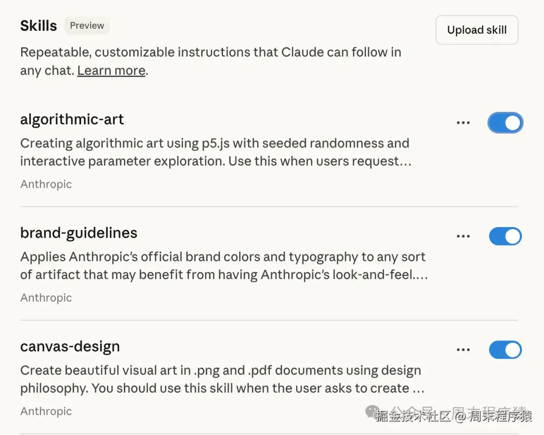 Skills 是一组由说明文档、脚本与资源组成的 "技能包",Claude 会在需要时动态加载,用于提升在特定任务上的一致性与表现,借助 Skills,Claude 能以可复用的方式完成某类任务,例如:按公司品牌规范创作文档、按组织特定流程分析数据,或自动化个人工作流。