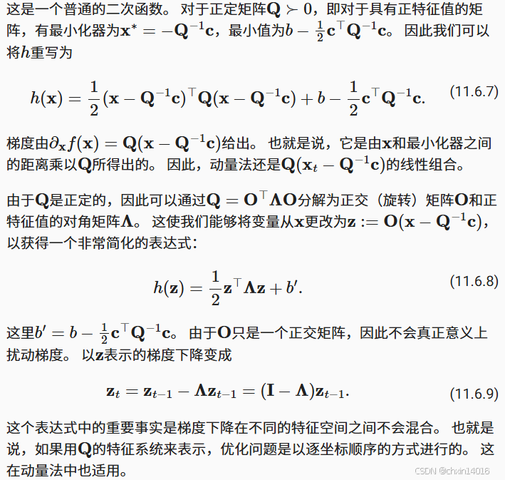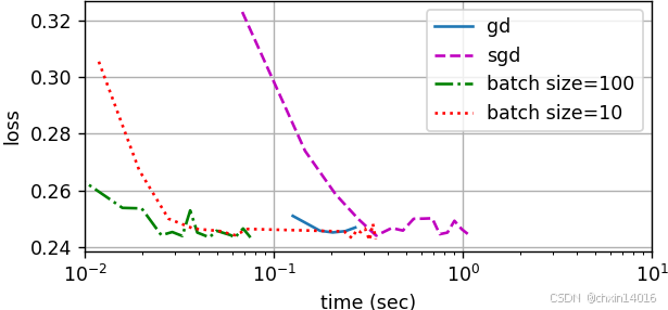 - 首先,学习率的大小很重要。如果它太大,优化就会发散;如果它太小,训练就会需要过长时间,或者我们最终只能得到次优的结果。我们之前看到问题的条件数很重要(有关详细信息,请参见 11.6节)。直观地说,这是最不敏感与最敏感方向的变化量的比率。