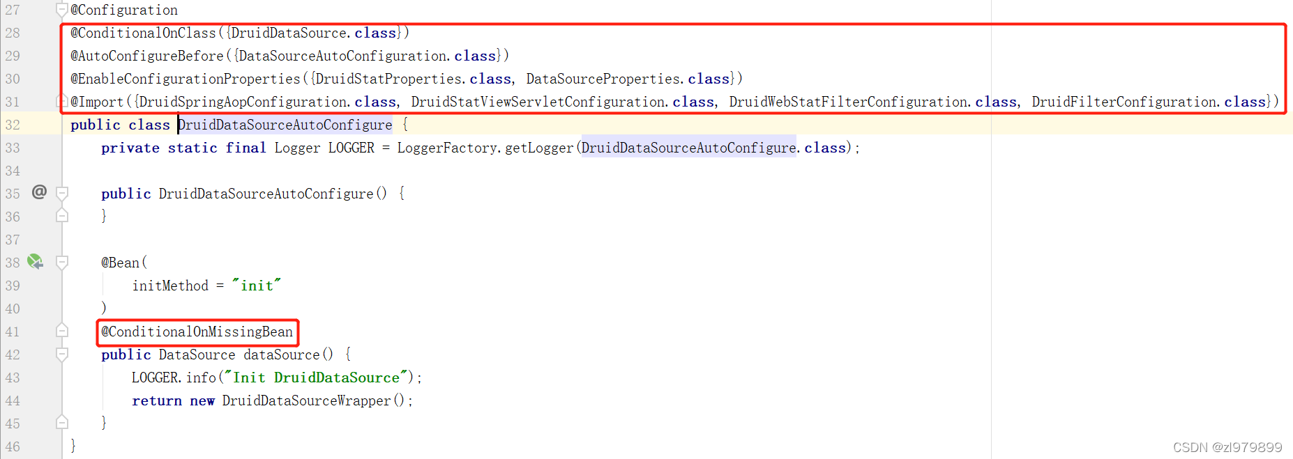 //默认的自动配置是判断容器中没有才会配@ConditionalOnMissingBean(DataSource.class)