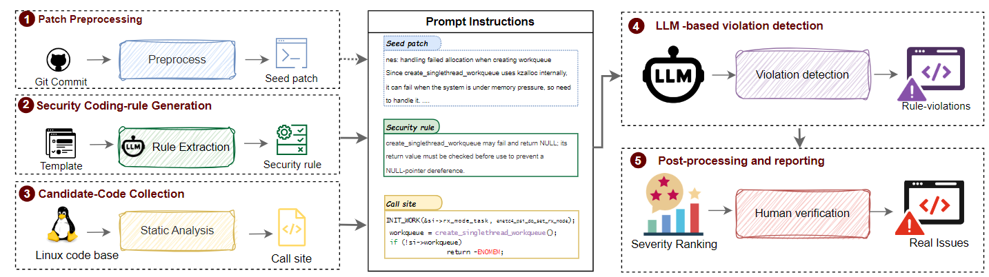 结合LLVM与LLM,从已知漏洞中提炼出一致的错误模式,例如特定的API误用。