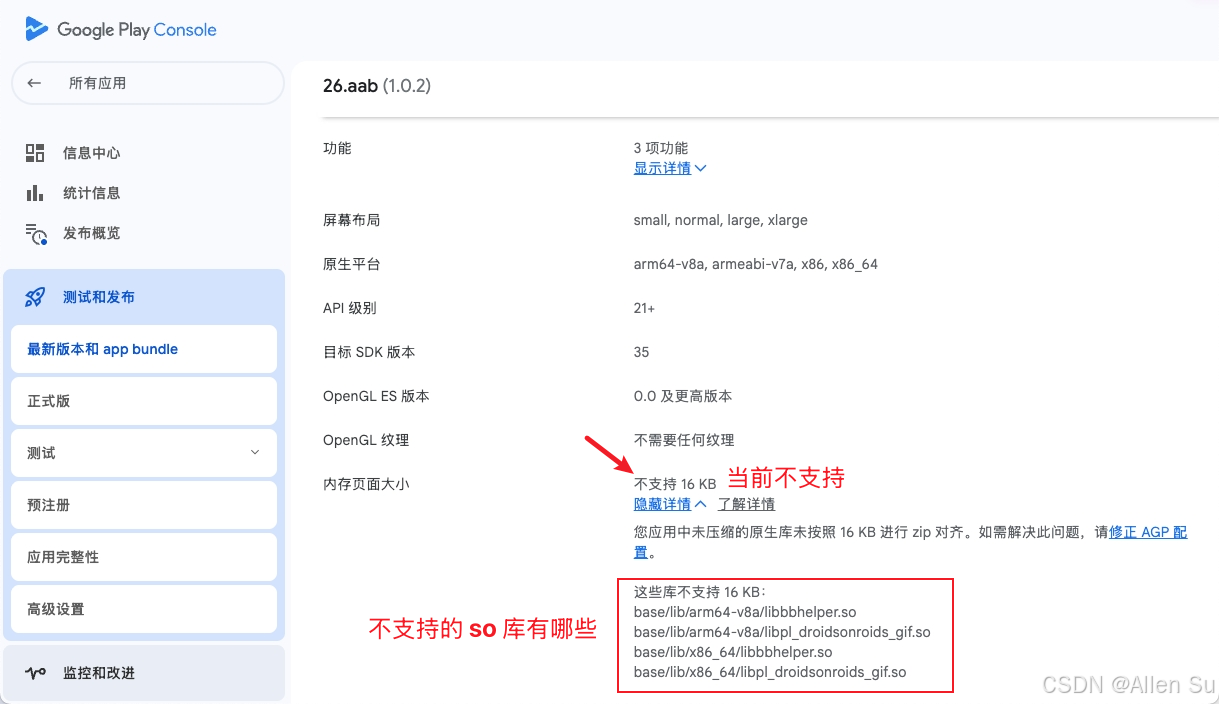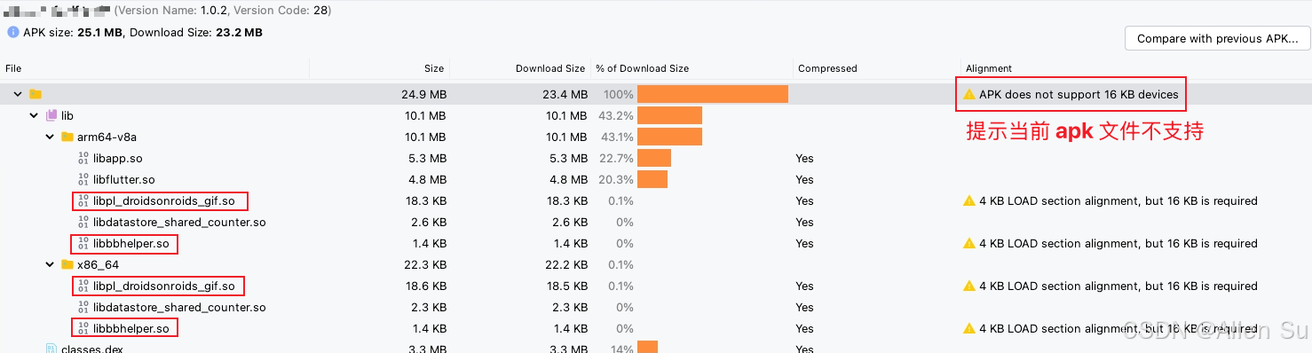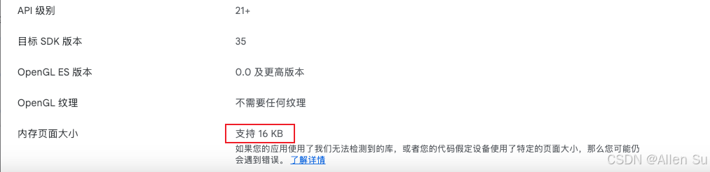 当然,也给出了解决方法,请点击 支持 16 KB 设备 跳转到官方文档。