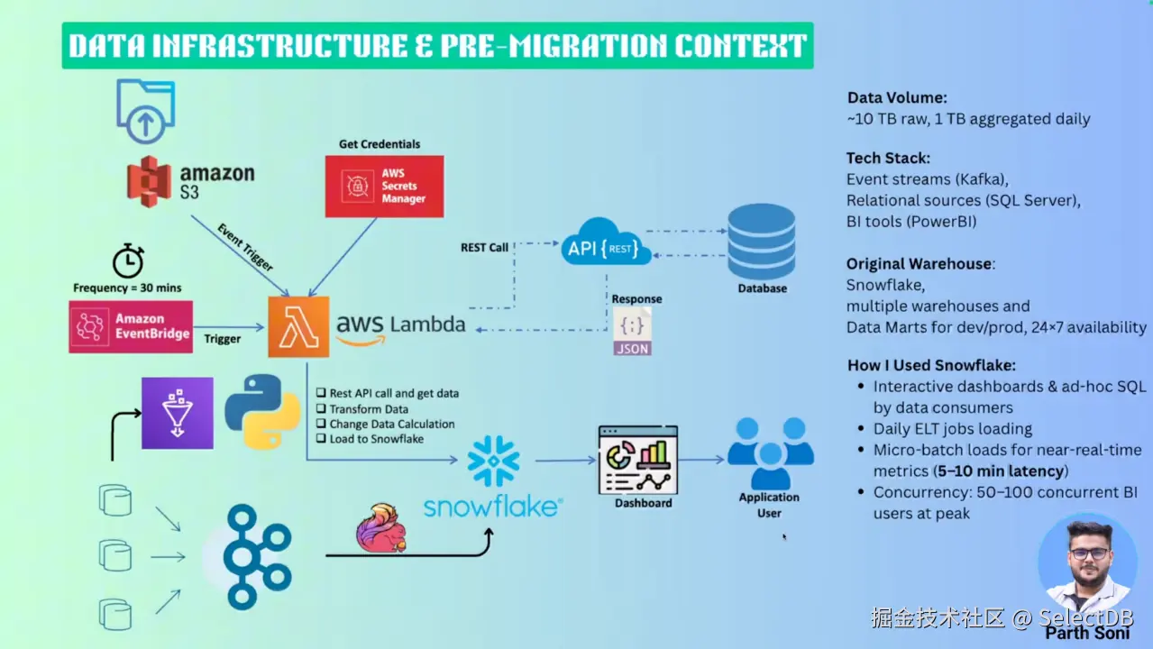 在原有架构中,Snowflake 承担着核心分析层的重要角色,为业务用户和利益相关者提供对清洗整理后数据的高效访问能力。平台主要支持两类核心场景: