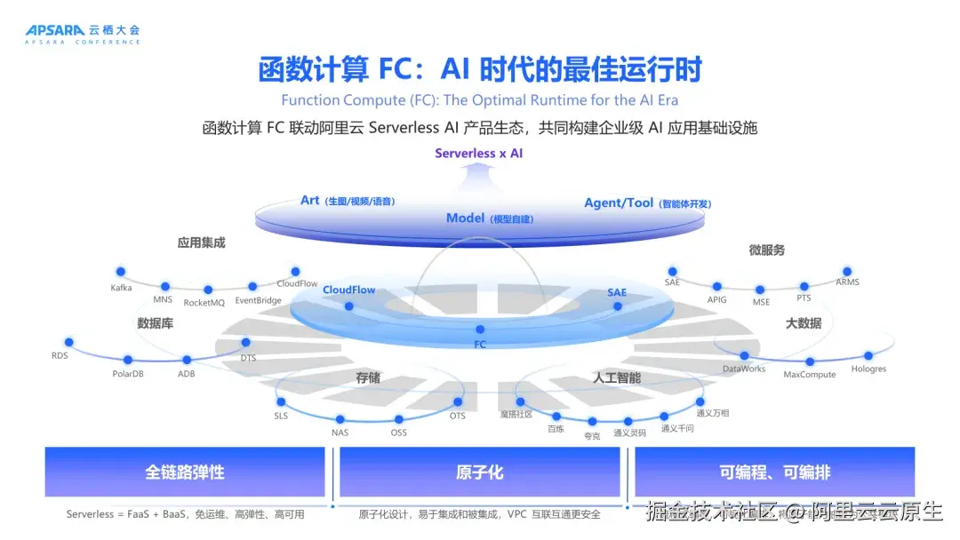 作为 AI 时代的最佳运行时,函数计算 FC 业界首推从 Serverless 进化为 Serverless AI,推出三大核心运行时底座: