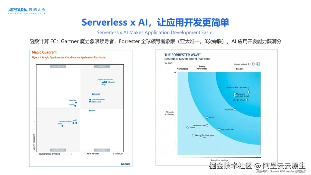 Serverless 架构因其动态弹性、免运维特性,成为 AI 原生架构的最短路径。开发者可专注于业务创新,无需关注基础设施细节。