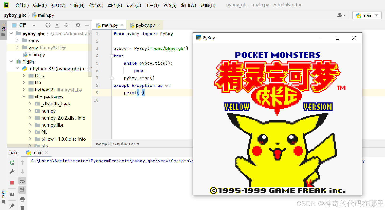 - 二、在pycharm中运行pyboy