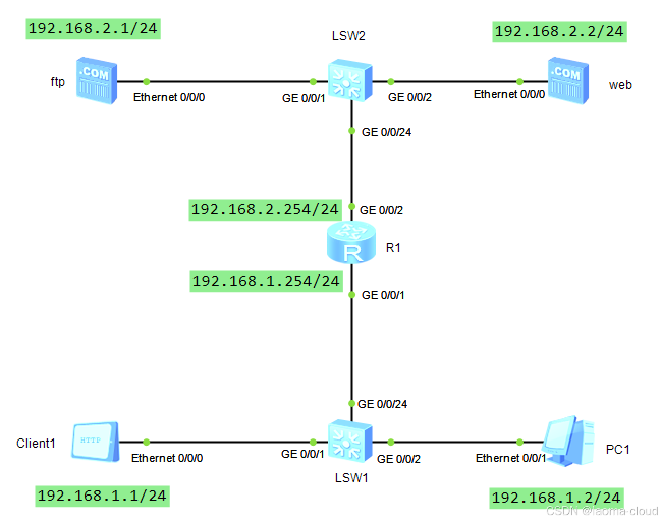 [Huawei-GigabitEthernet0/0/1]ip address 192.168.1.254 24