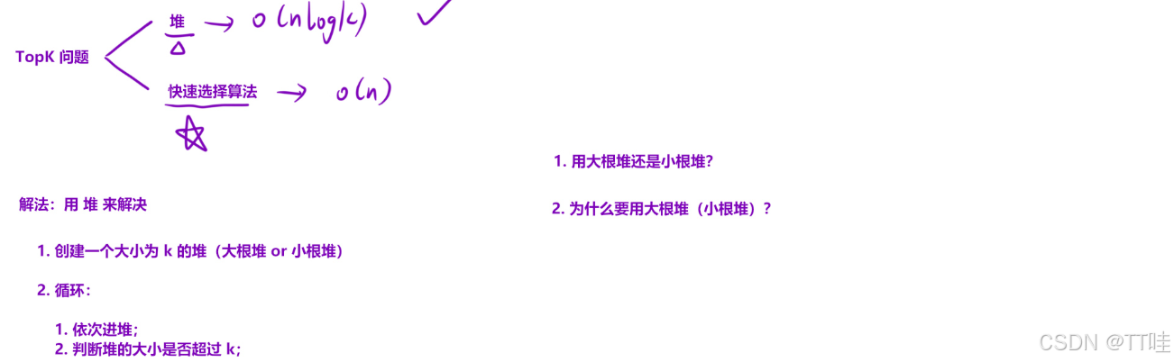 我相信,看到 TopK 问题的时候,兄弟们应该能⽴⻢想到「堆」,这应该是刻在⻣⼦⾥的记忆。