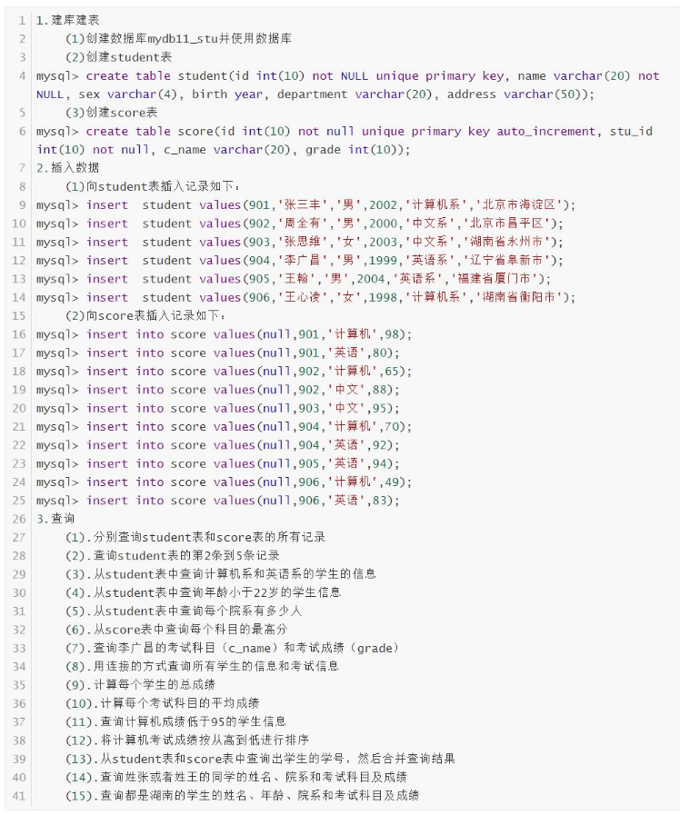 (13).从student表和score表中查询出学生的学号,然后合并查询结果