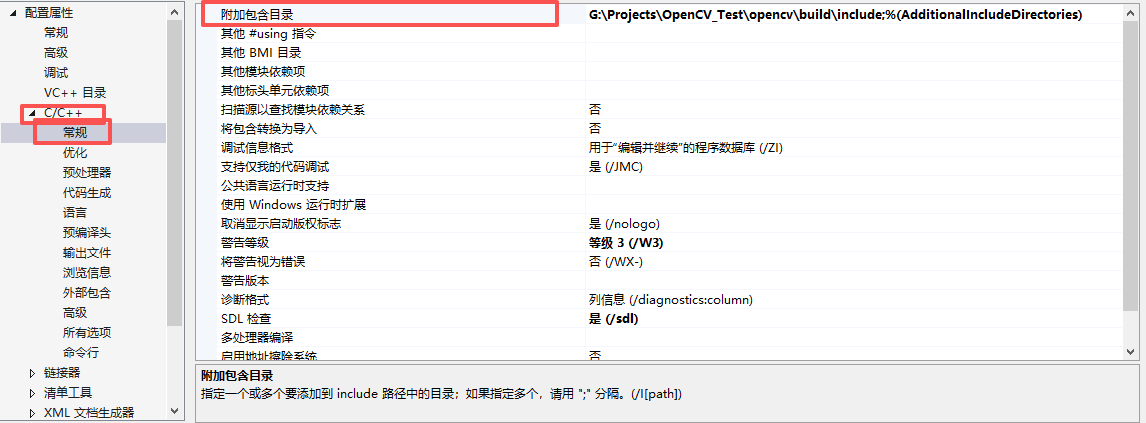 2.将代码目录添加到工程中,配置属性-c/c++-常规-附加包含目录