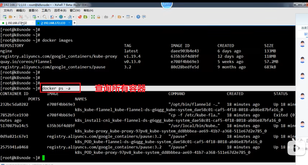 查询pod里的docker容器:docker ps,查询所有容器:docker ps -a