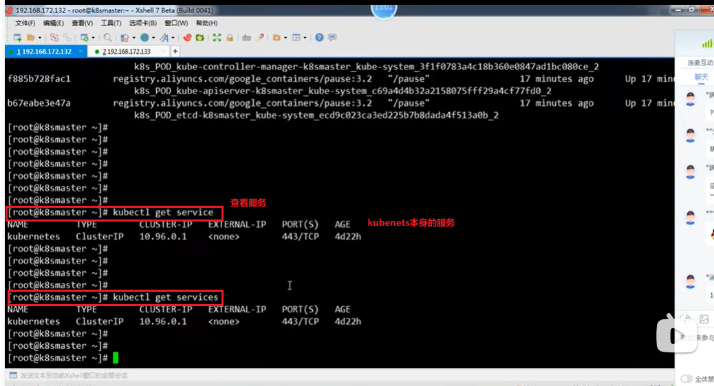 查看服务:kubectl get service或kubectl get services
