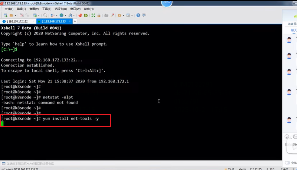 yum安装网络工具:yum install net-tools -y,-y是自动确认的意思