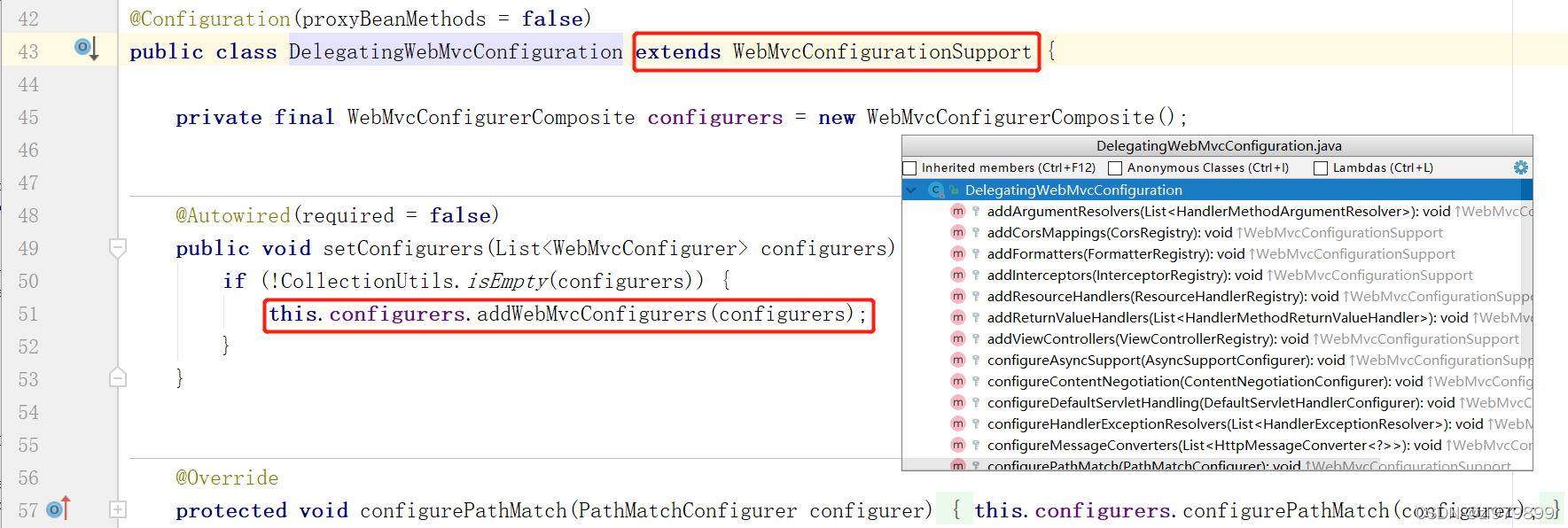 - DelegatingWebMvcConfiguration 的作用,只保证SpringMVC最基本的使用,然后搭配系统中所有的 WebMvcConfigurer