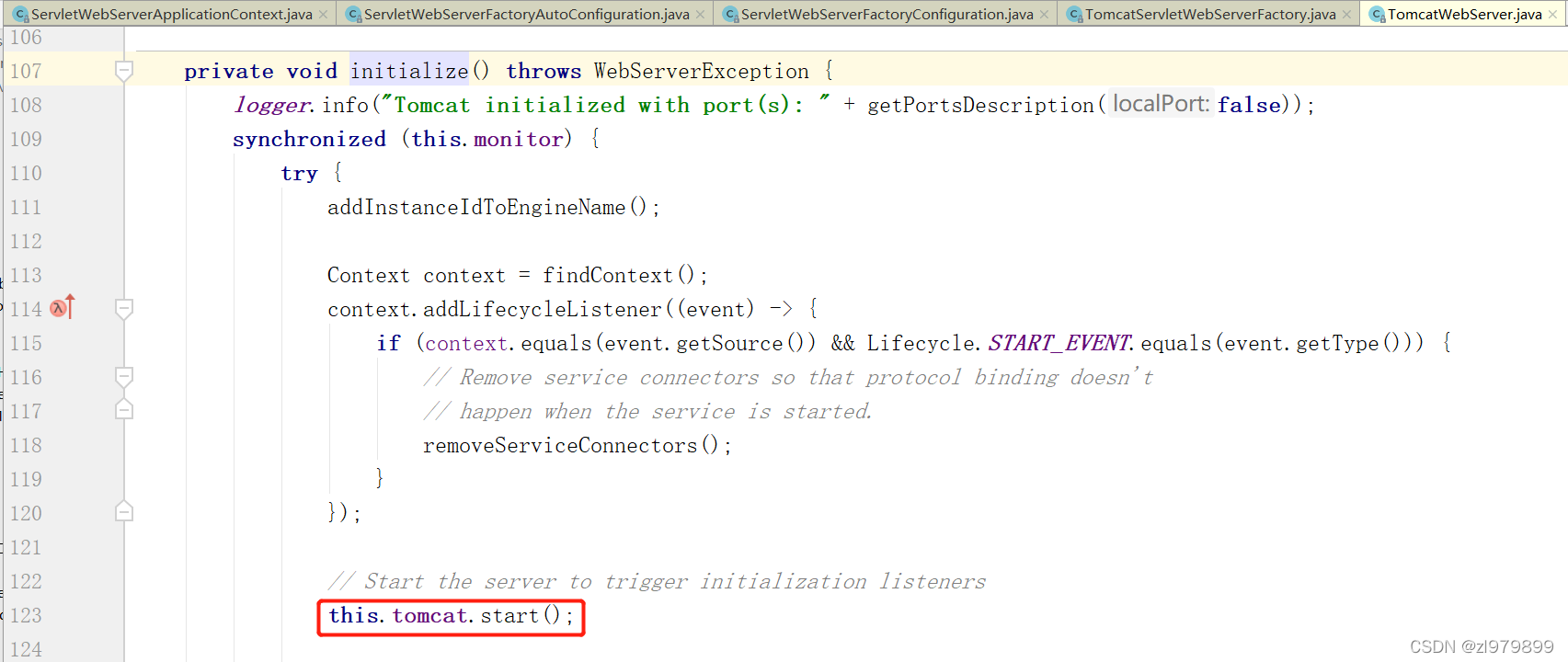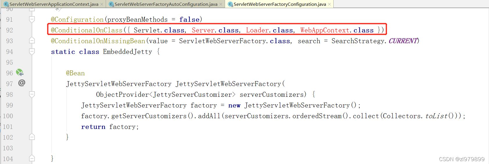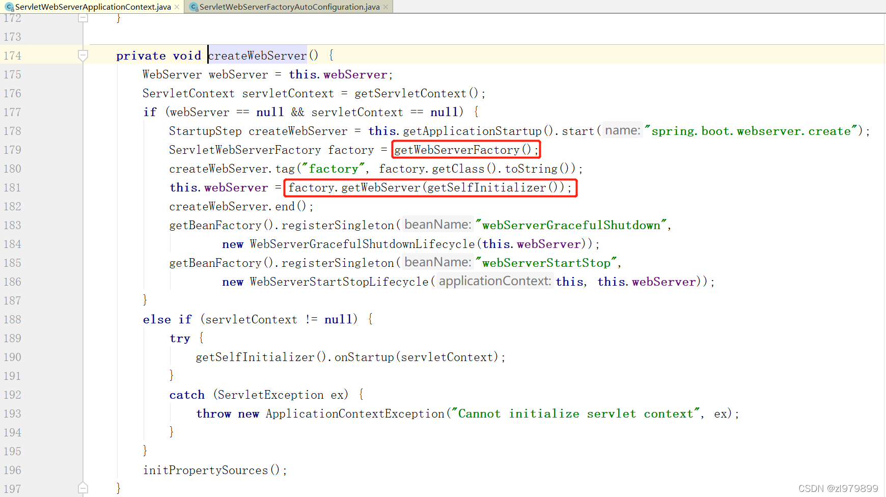 - 启动的时候,ServletWebServerApplicationContext 寻找 ServletWebServerFactory