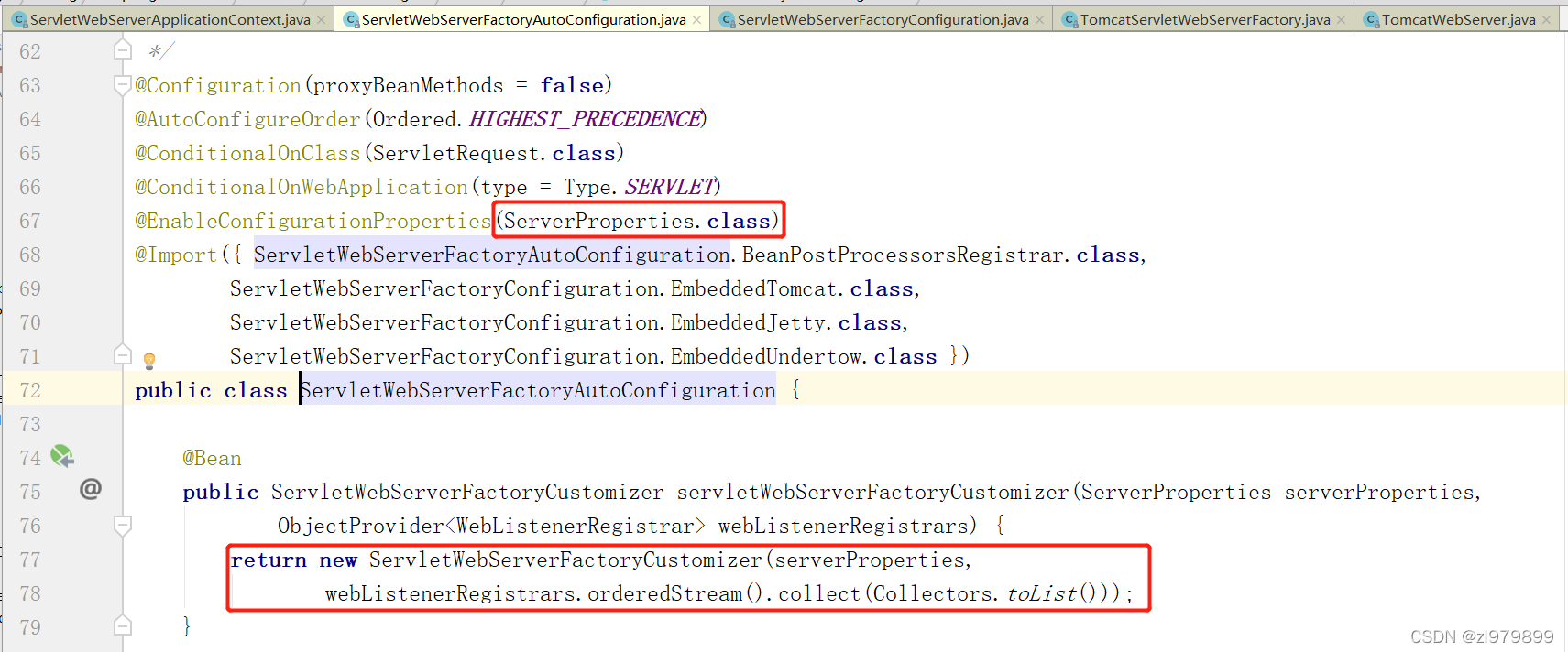- web服务器的自动配置类ServletWebServerFactoryAutoConfiguration