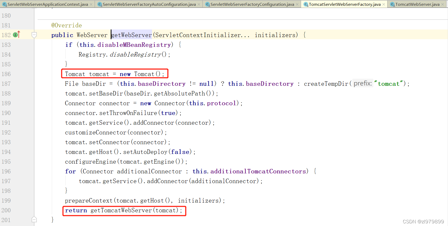 - 获取到唯一确定的服务器factory,调用getWebServer()