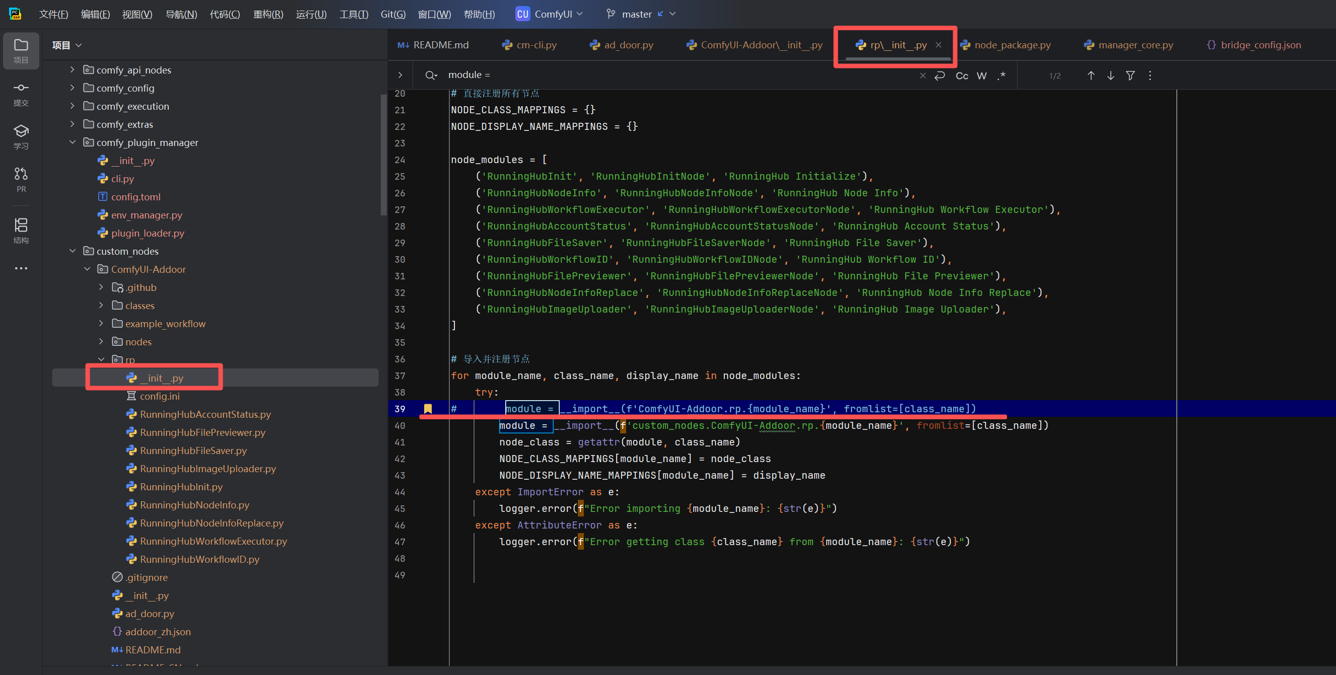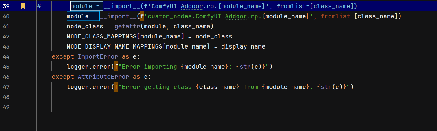 我们手动修改了 ComfyUI-Addoor 的导入逻辑,使其使用更明确的路径: