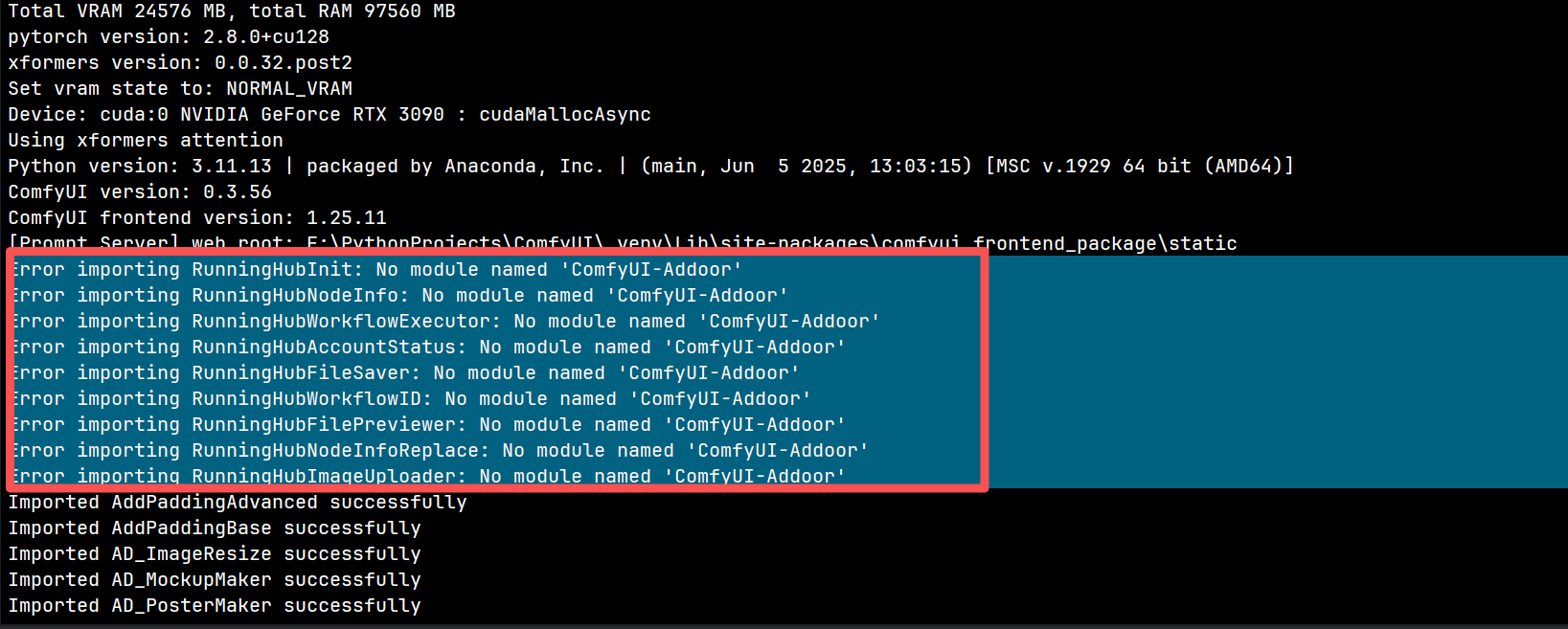 Error importing RunningHubInit: No module named 'ComfyUI-Addoor'