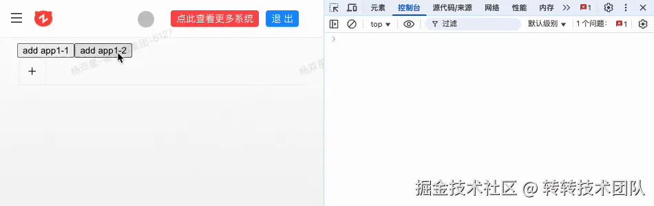 操作一:先打开app1-1,再打开app1-2,然后关闭app1-1后会导致app1-2也消失,然后关闭app1-2的tab,控制台有报错;