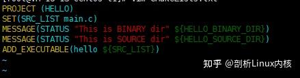 定义了一个为hello的可执行文件,相关的源文件是SRC_LIST中定义的源文件列表。