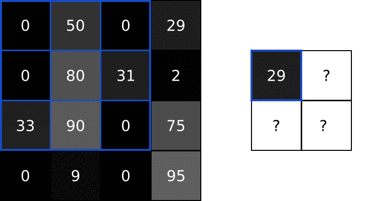 这里放一个在视频里动画讲如何池化的例子,更有助于理解。