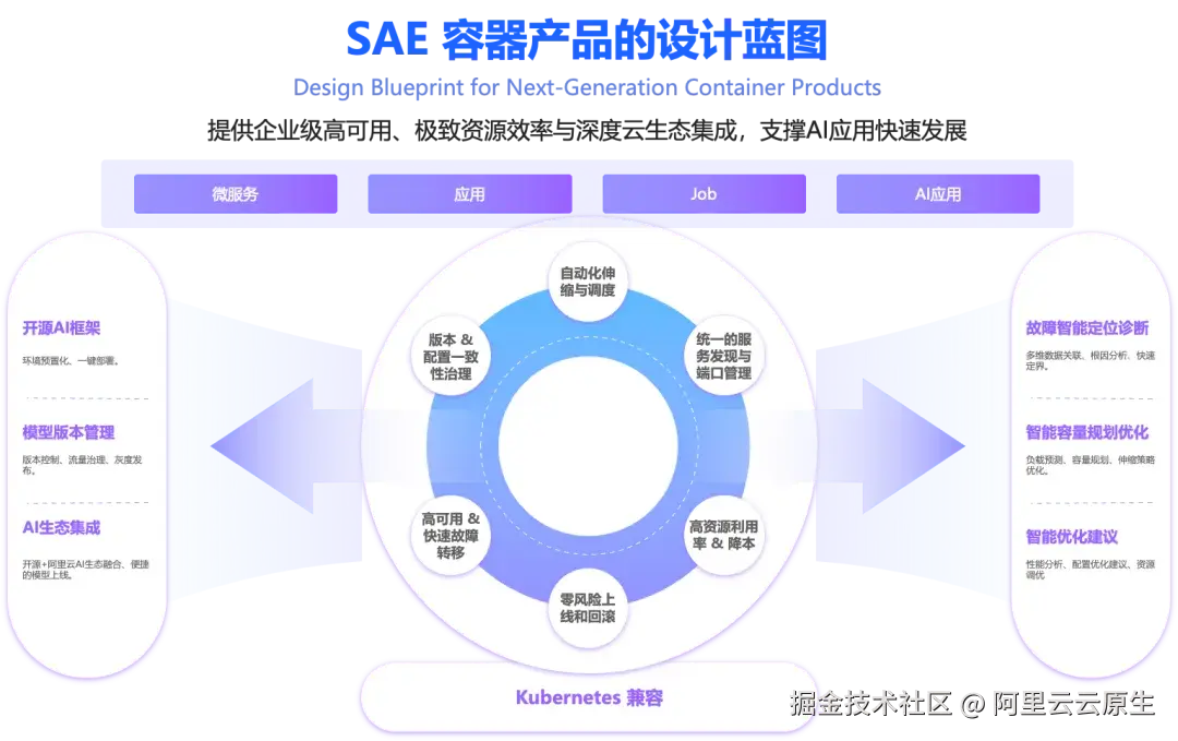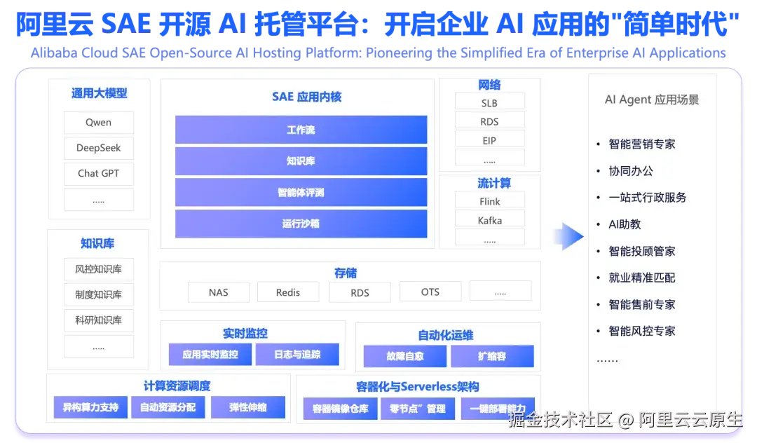 SAE 正是为此而生:它将阿里巴巴十几年来沉淀的运维经验产品化,将复杂的 Kubernetes 体系产品化封装成"应用级"能力,以企业级高可用、极致资源效率、深度云生态集成为底座,既支持传统 Web/微服务/批作业等应用,也面向 AI Agent、RAG 与工作流类应用提供一键式生产级托管。