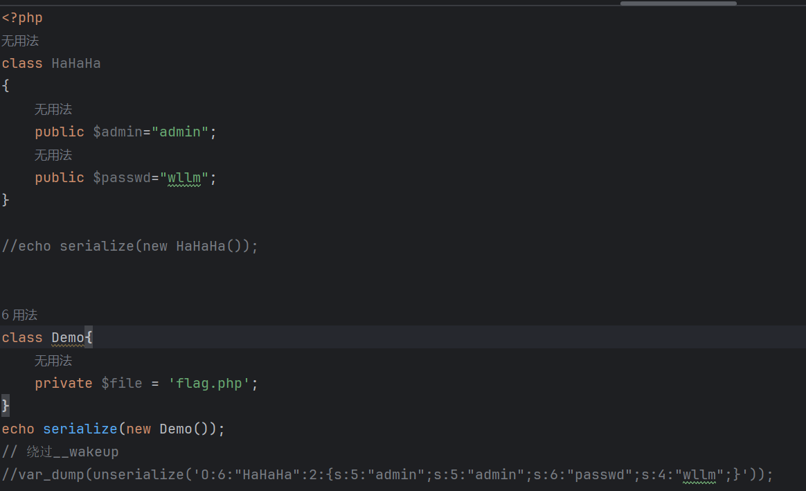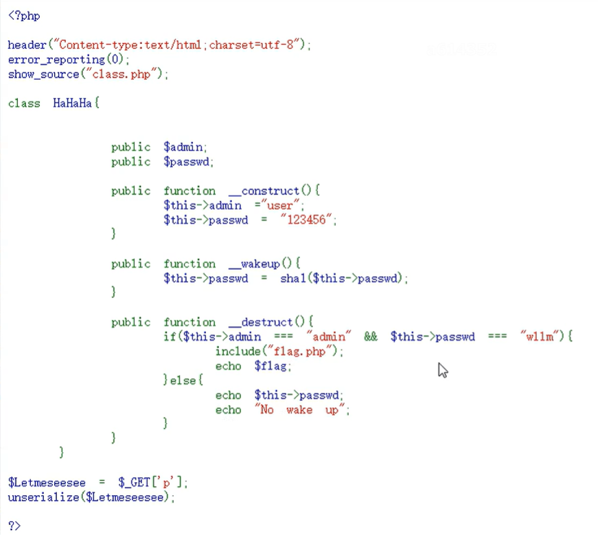 最后讲一下绕过方法,题目如下,其实只要将admin和passwd分别赋值成admin和wllm就可以了,并且绕过一下--wakeup