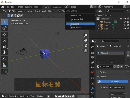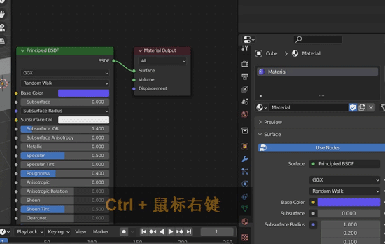 6.打开材质节点编辑器,可以用之前讲到的多窗口模式,并且切换到材质编辑器菜单。