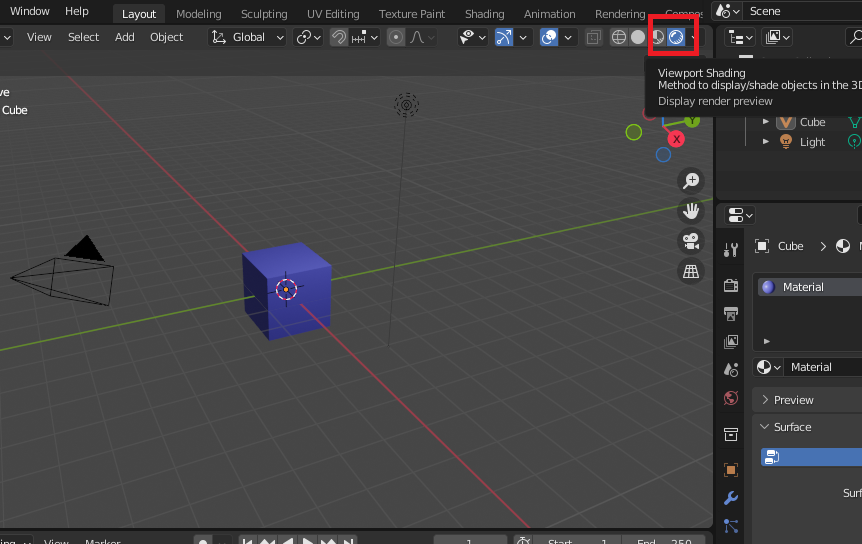 2.但默认情况下无法预览材质球效果,需要修改预览模式为Shading