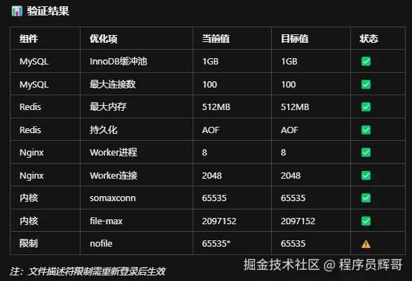# - 系统级优化(内核参数、文件描述符、网络优化)