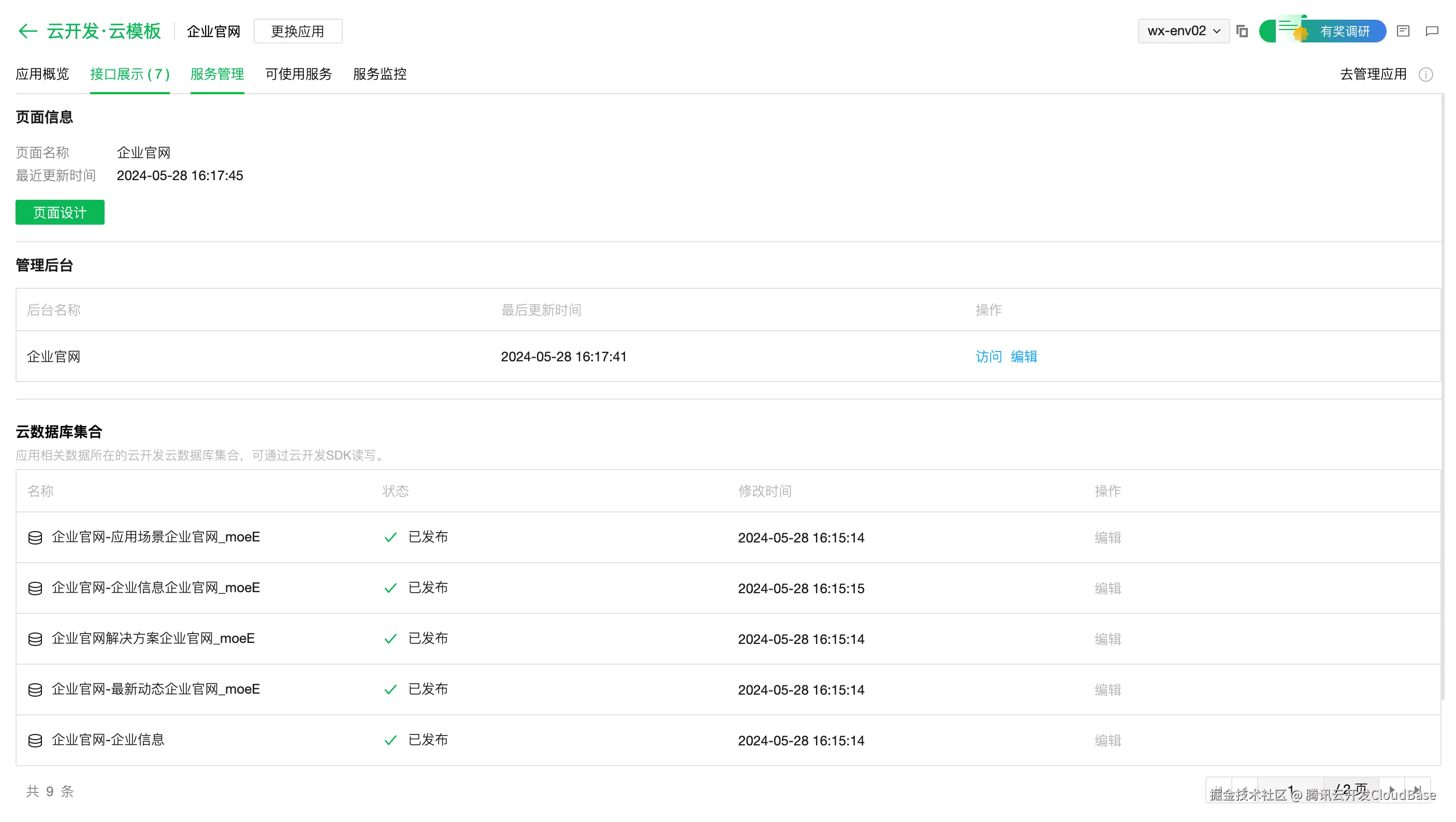 - 管理后台:云模板提供的管理后台,可直接访问,或在云后台查看