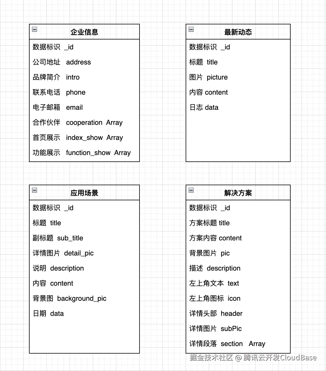 - 云数据库集合:本质为云开发数据库表,用于存储数据