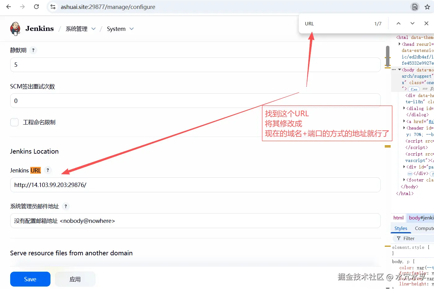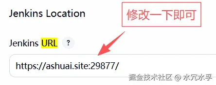 我们只需要把Jenkins Location的Jenkins URL修改成当前域名端口访问方式即可