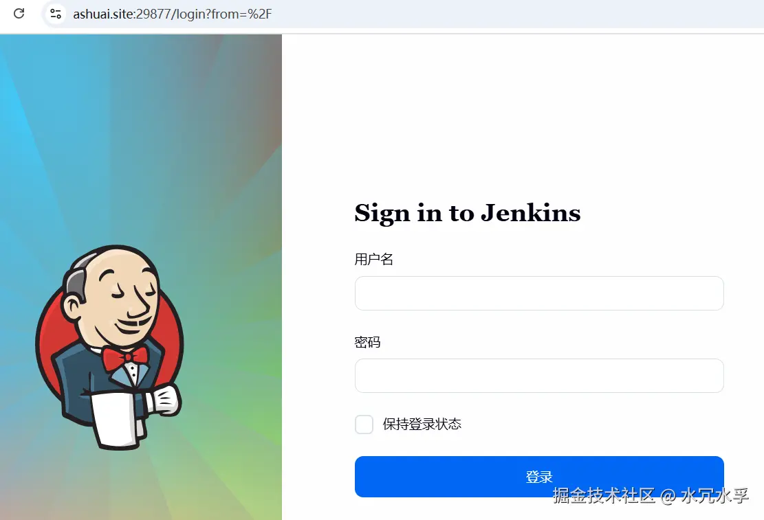 这样的话,通过http的ip端口,就能够访问这个Jenkins服务了,比如:ashuai.site:29876