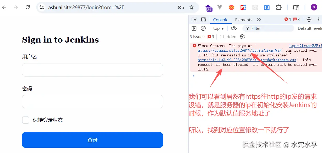 这个反向代理错误,并不是nginx配置的错误(容易让人误解)而是,Jenkins初始化安装的时候,使用服务器的ip和后续的域名对应错误导致的
