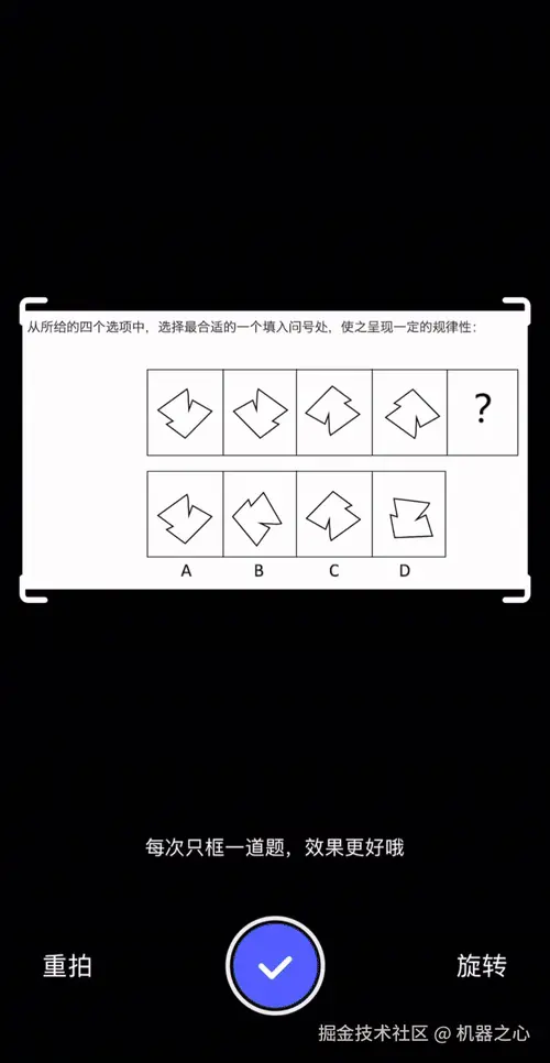 逻辑推理能力也是测评必不可少的。我们采用拍照搜题的形式,上传了一道图像推理题,夸克先是观察图形规律,继而进行分析、推理,最终选出了正确答案,整个过程既快又准。