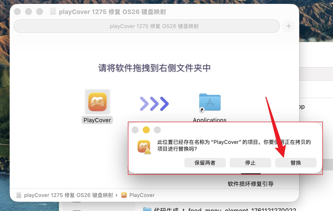 点击替换前注意不要运行旧版本的playCover