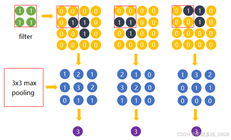 c. 填充值zero-padding:在外围边缘补充若干圈0,方便从初始位置以步长为单位可以刚好滑倒末尾位置,通俗地讲就是为了总长能被步长整除。