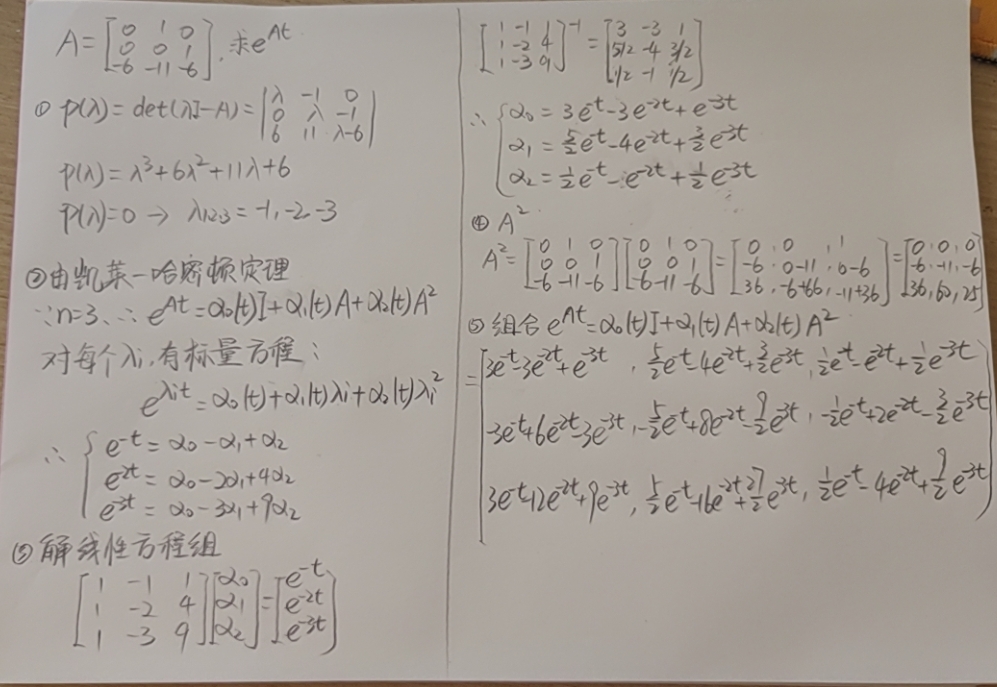 【矩阵分析与应用】【第8章 特征分析】【8.3.4 凯莱哈密顿定理求解矩阵指数 e^At】