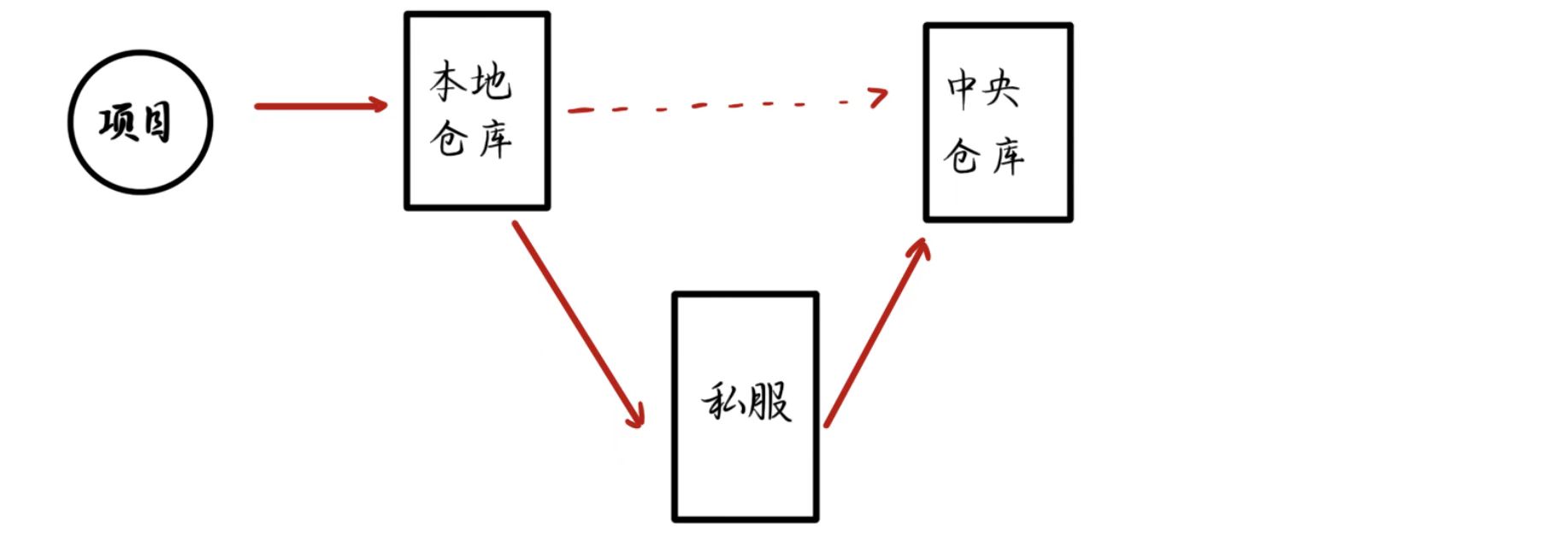 当maven需要下载资源时:如果本地仓库不存在,就向私服请求,私服存在就直接返回;私服不存在则先从中央仓库下载到私服,再返回到本地。