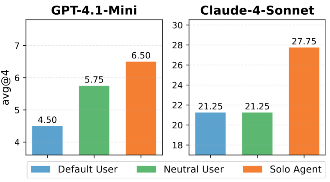 用户模拟器基于 GPT-4.1 实现,评估器基于 Claude-3.7-Sonnet 实现;