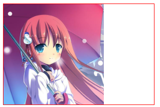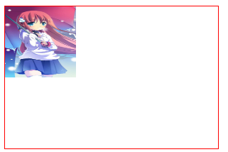 上面的css代码表示设置一个div盒子,宽300像素,高200像素,红色边款,宽度1像素,背景图片不重复,设置图片高宽均为100像素,效果如下图