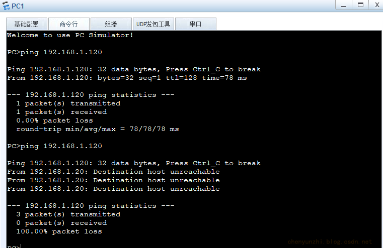 此操作将 0/1 端口 绑定到 VLAN 10,然后发现ping不通PC2了,因为它不属于Vlan10。